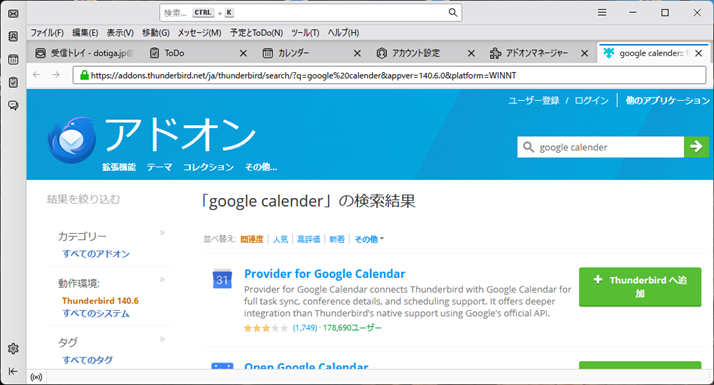 図に示す”Provider for Google Calendar”というアドオンをインストールしていた。